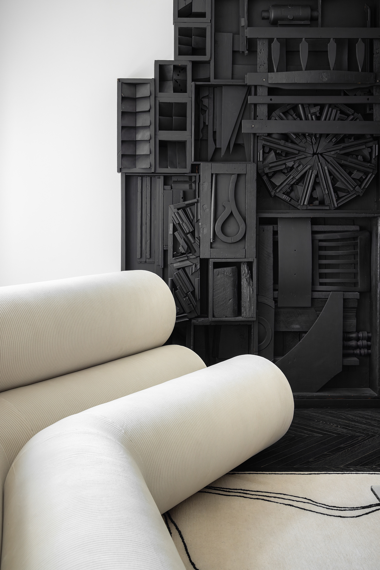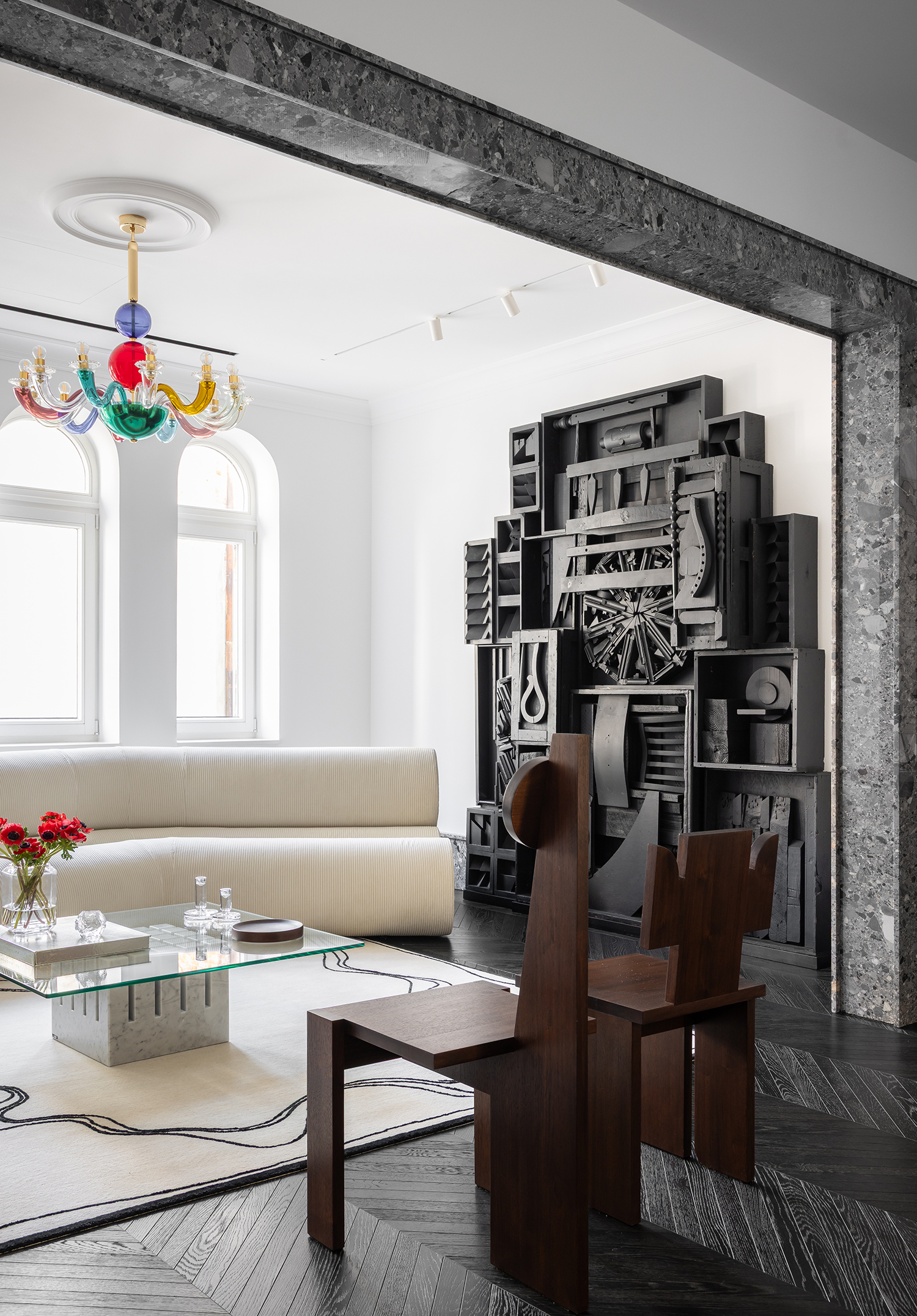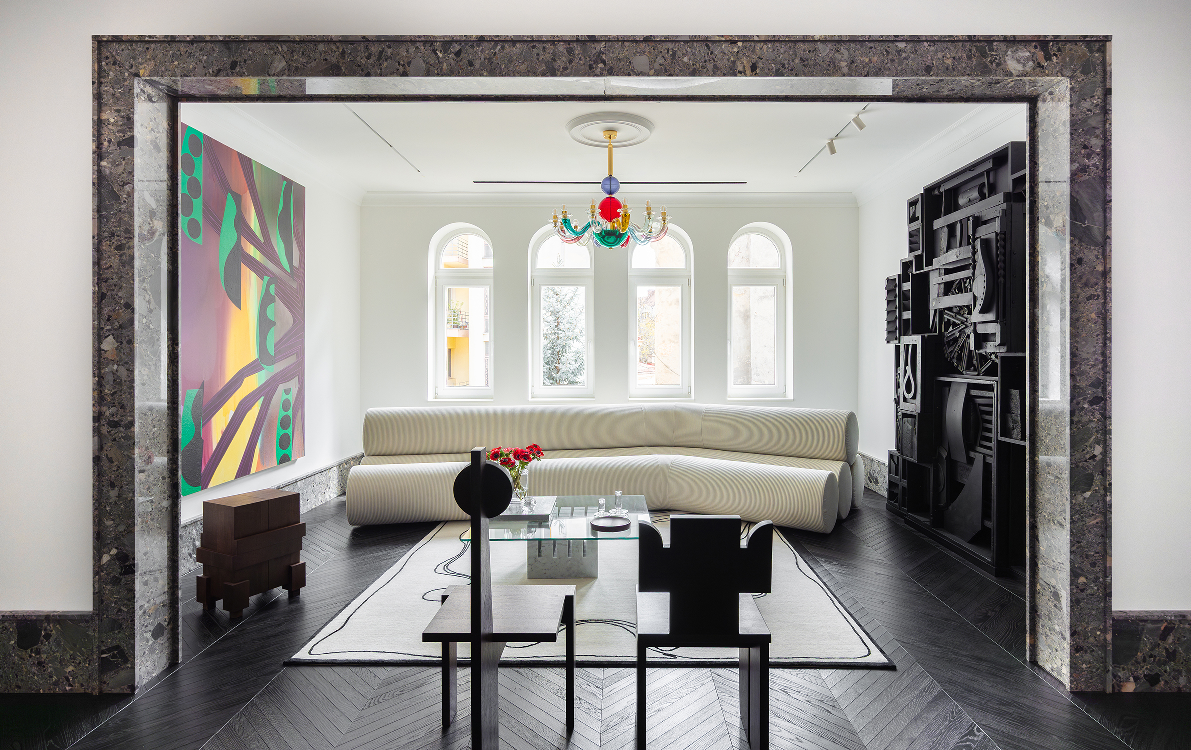 Set within Bucharest’s layered architectural fabric, this townhouse renovation unfolded over three years as a precise and restrained intervention, conceived as both a private home and a vessel for a significant all-female 20th and 21st century art collection, including works by Louise Nevelson, Tracey Emin, Judy Chicago, and Andra Ursuța. The primary goal was to create a calm white architectural canvas—an interior framework where the collection could expand, breathe, and fully unfold without competition.